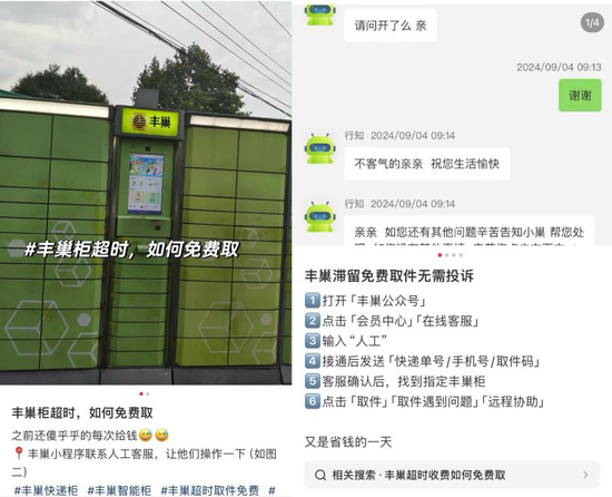 在小红书、黑猫投诉 【下载黑猫投诉客户端】平台上,很多用户控诉,快递员未经同意直接将包裹放入丰巢快递柜,导致产生滞留费。同时,为了避免缴纳这笔费用,也有不少网友支招“如何超时免费取件的方法”。